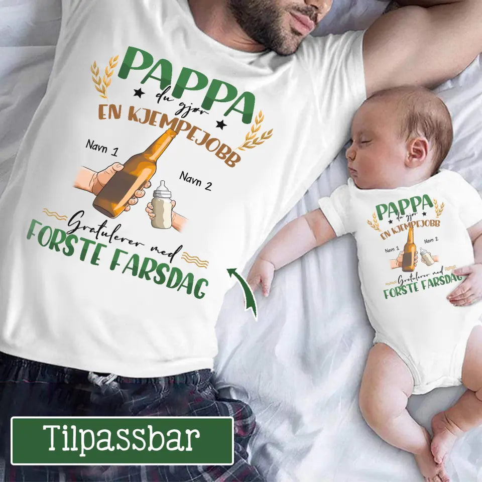Fantastiskt jobb Glad 1:a fars dag - Matchande T-shirt anpassat foto till Pappa och bebis