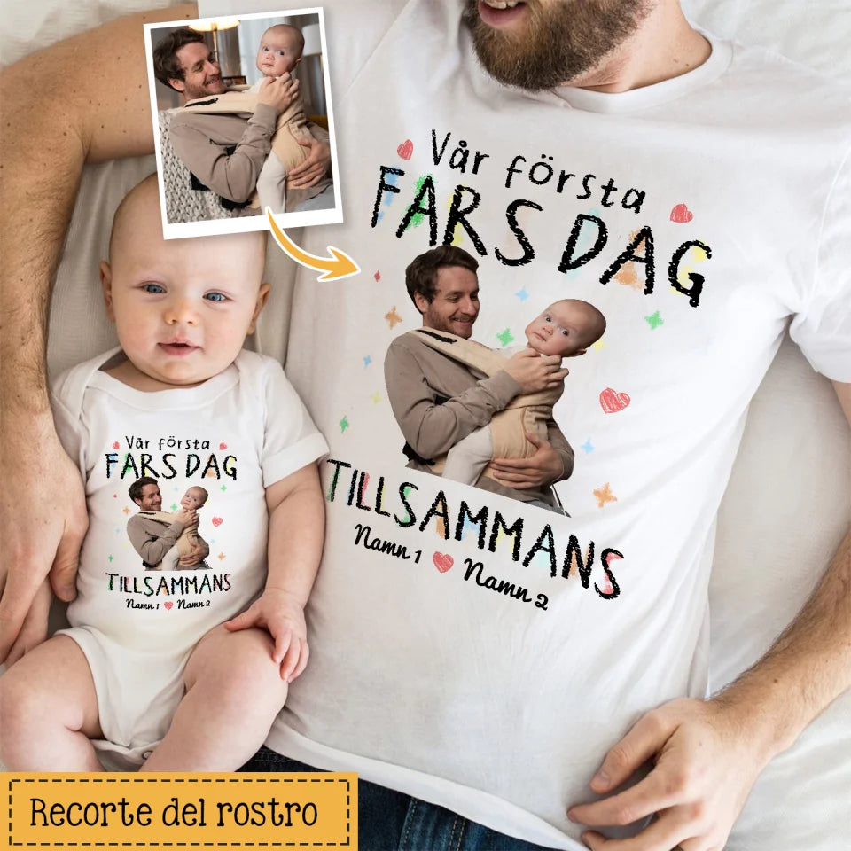 Vår första fars dag tillsammans - Matchande T-shirt anpassat foto till Pappa och bebis