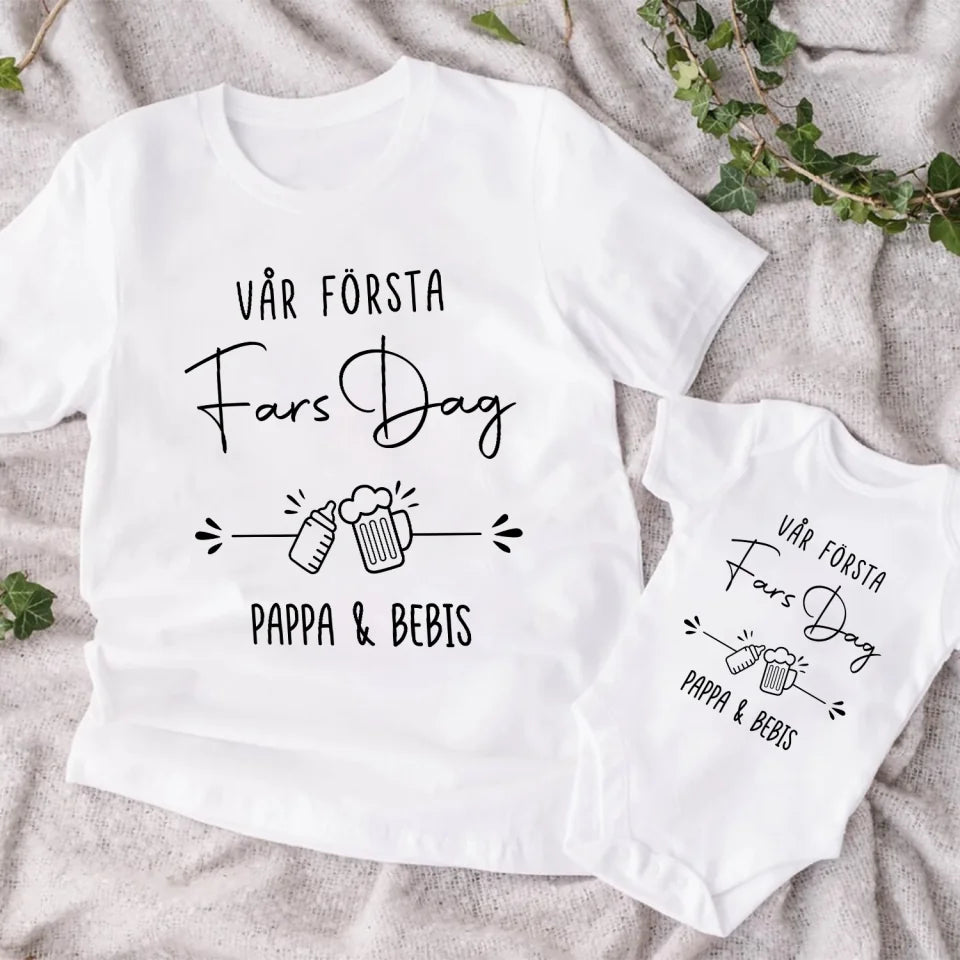 Vår 1:a fars dag tillsammans - Matchande T-shirt till Pappa och bebis