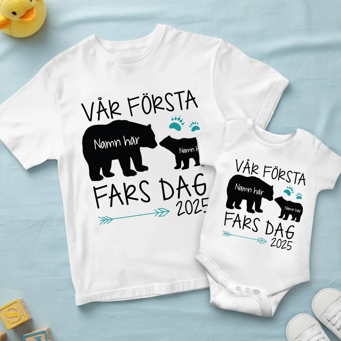 Vår första Fars dag - Matchande T-shirt till Pappa och bebis