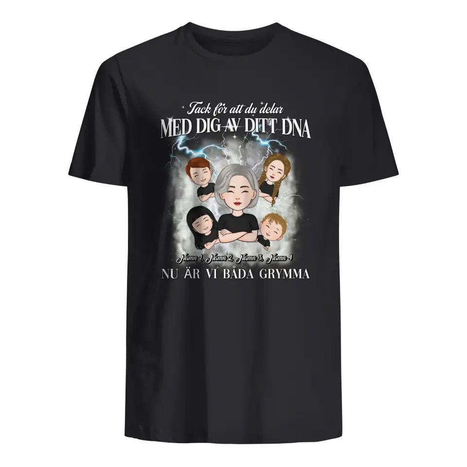 Personlig t-shirt för mamma | Tack för att du delar med dig av ditt DNA, nu är vi båda grymma