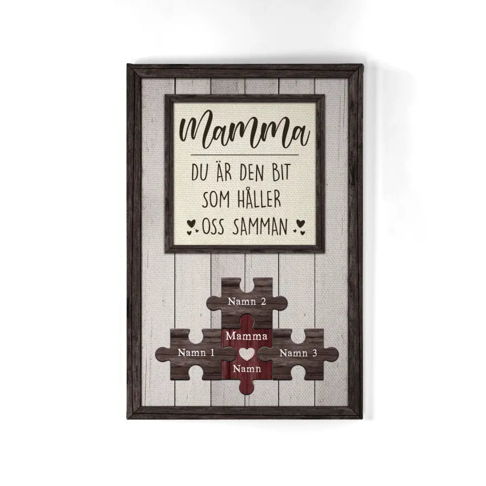 Personlig Kanvas till mamma | Personlig present till mor | Mamma Du Är Den Bit Som Håller Oss Samman