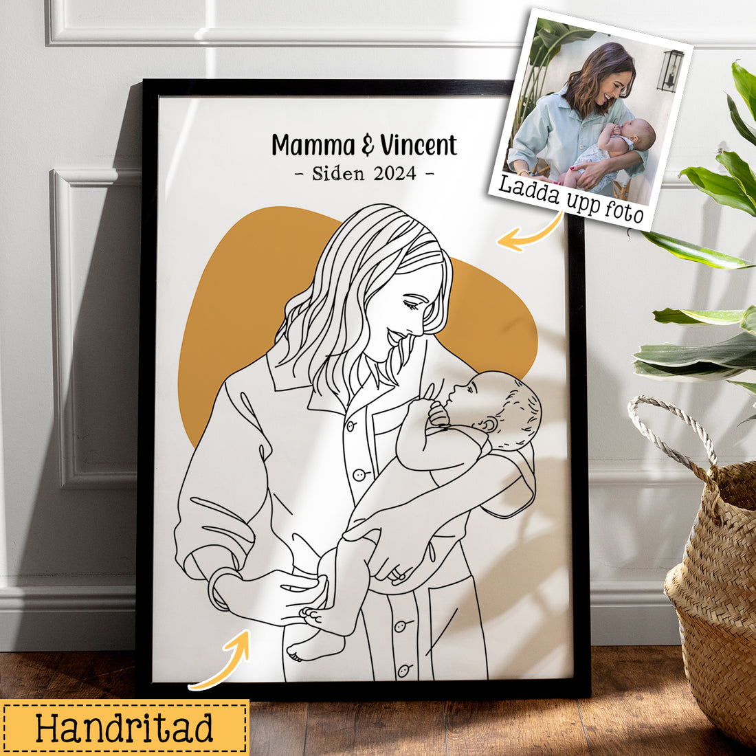 Personligt porträtt av mamma, Linje konst stil | Digitala filer