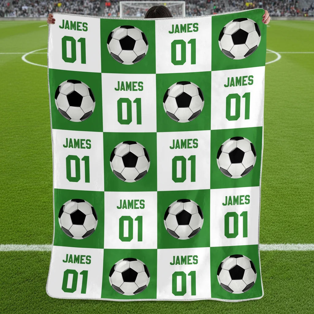 Mjuk filt med namn och fotbollsmotiv - Personlig Filt För Barn