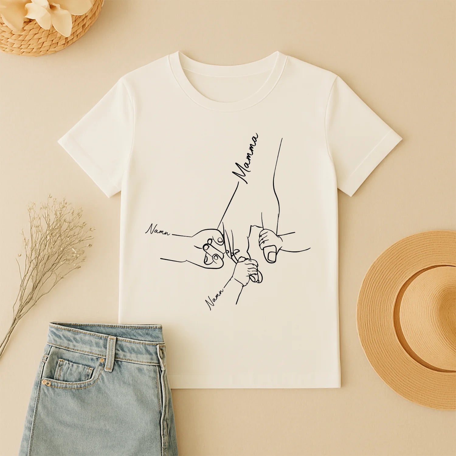 Hånd Mamma og barn - Personlig mamma T-skjorte
