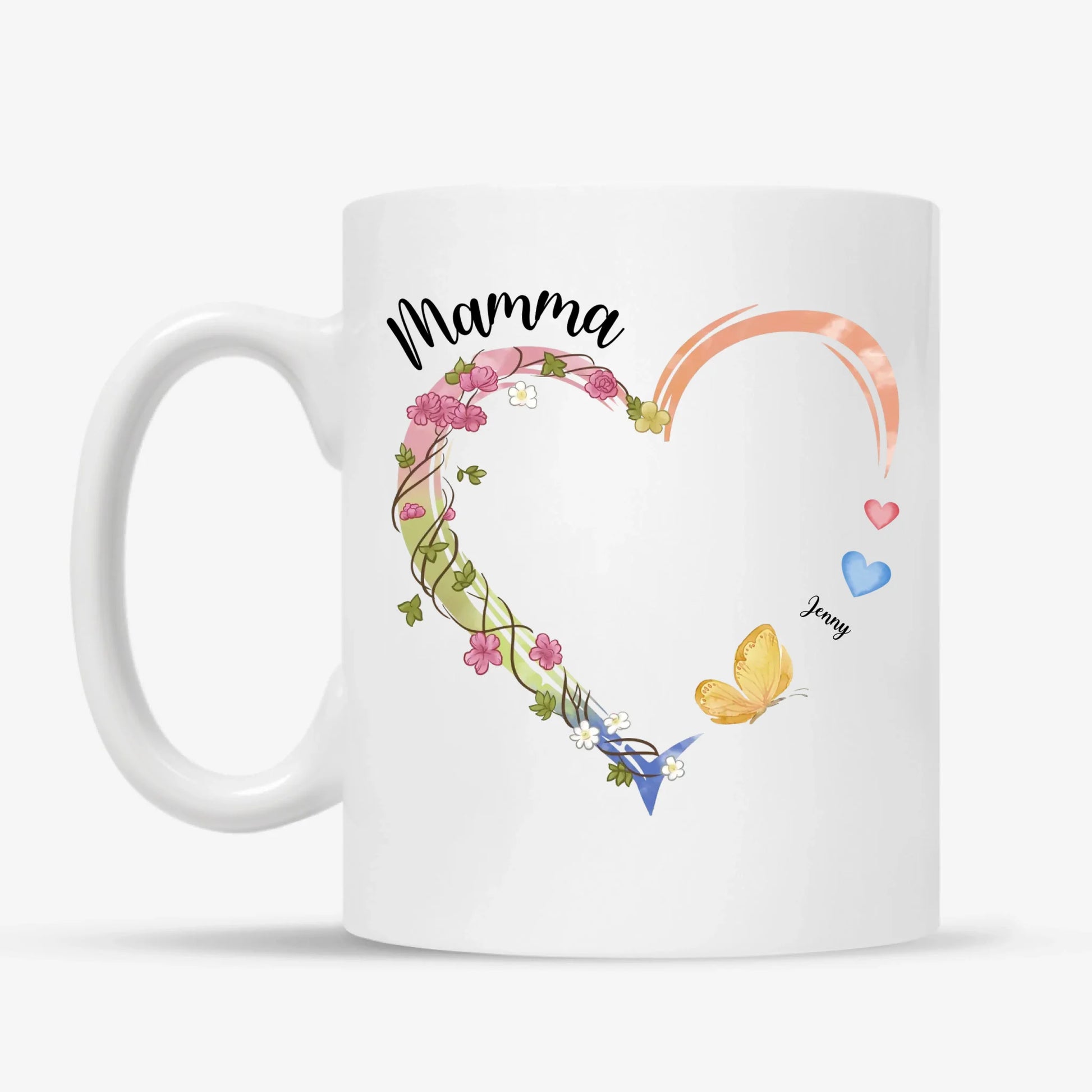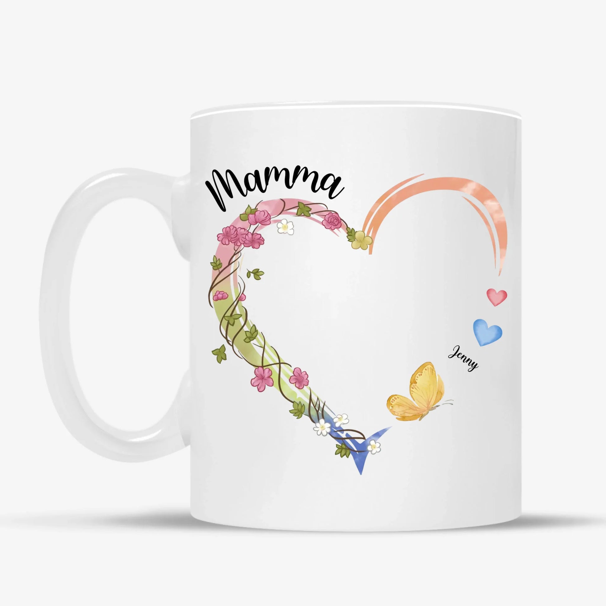 Mamma hjerte krus – Personalig med navn og sommerfugler
