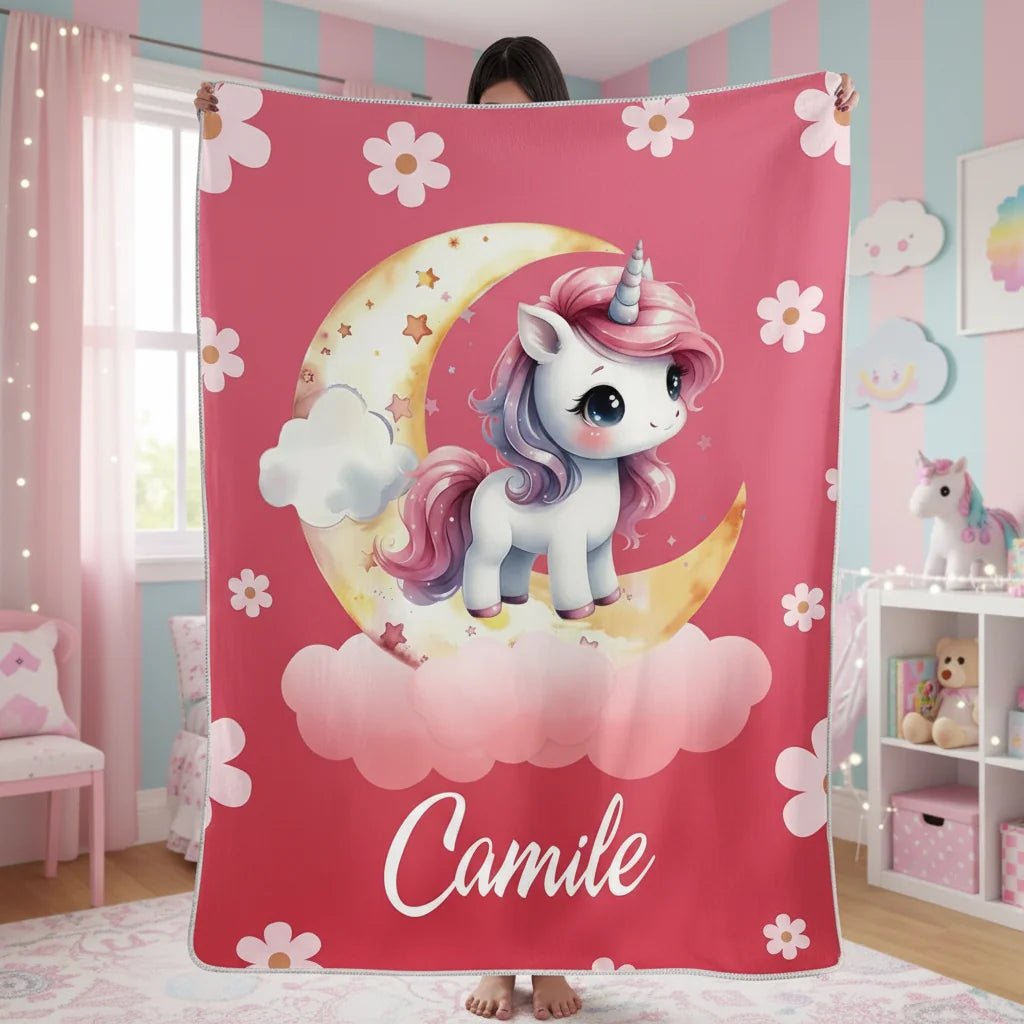 Mjuk filt med Enhörning - Personlig Filt För Barn