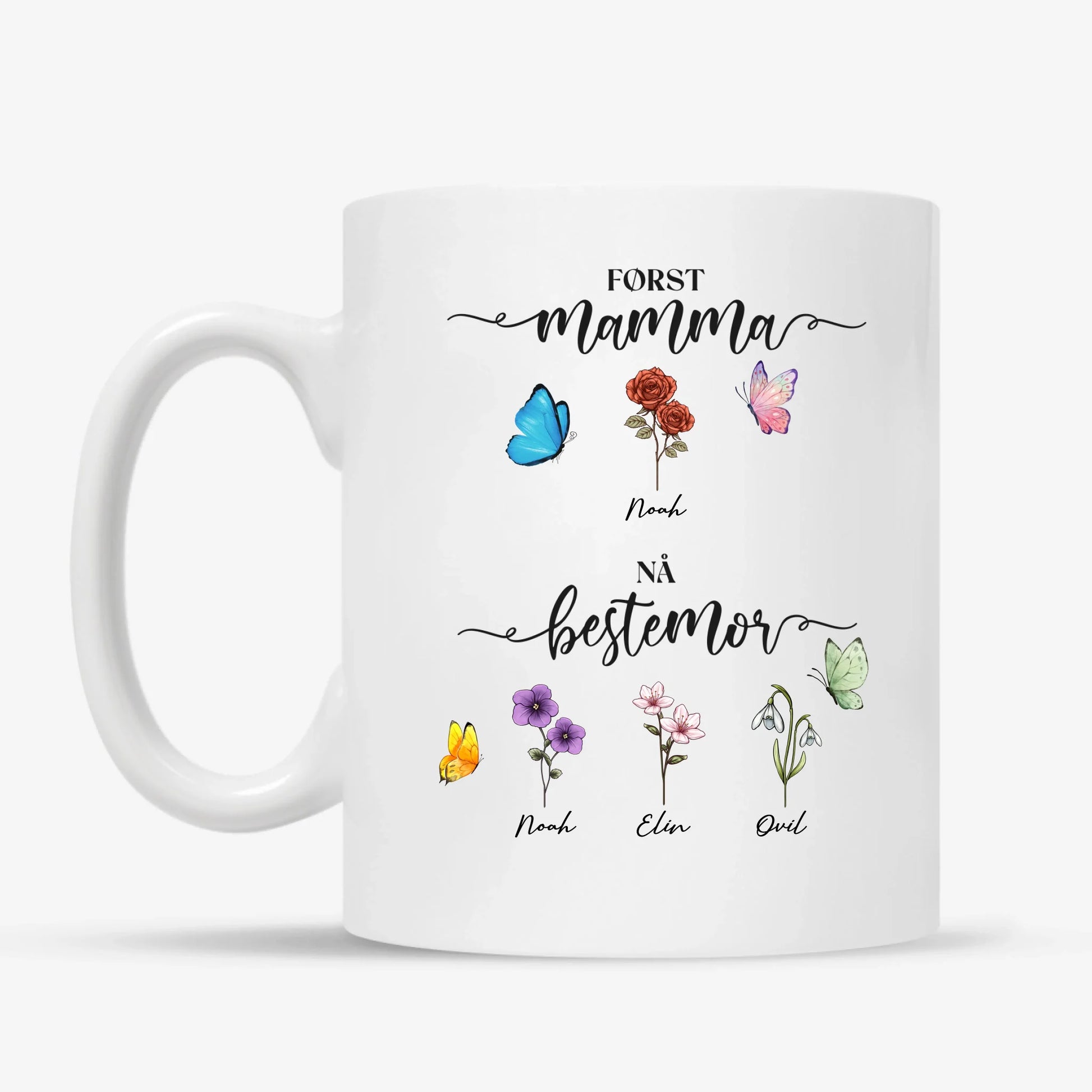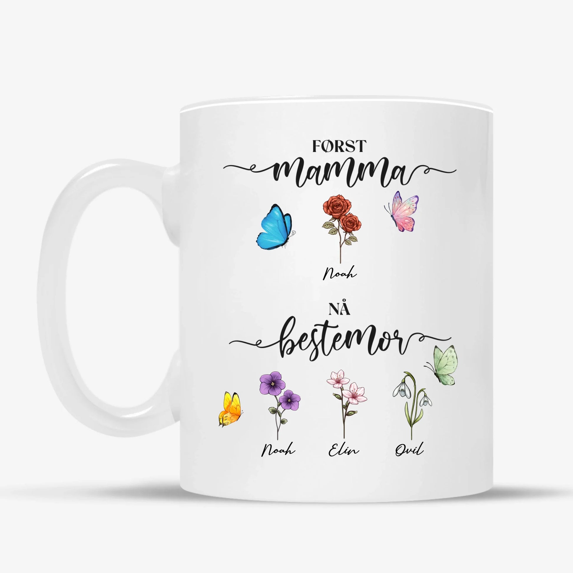 Personlig Kopp til Bestemor – Først Mamma, Nå Bestemor med Navn