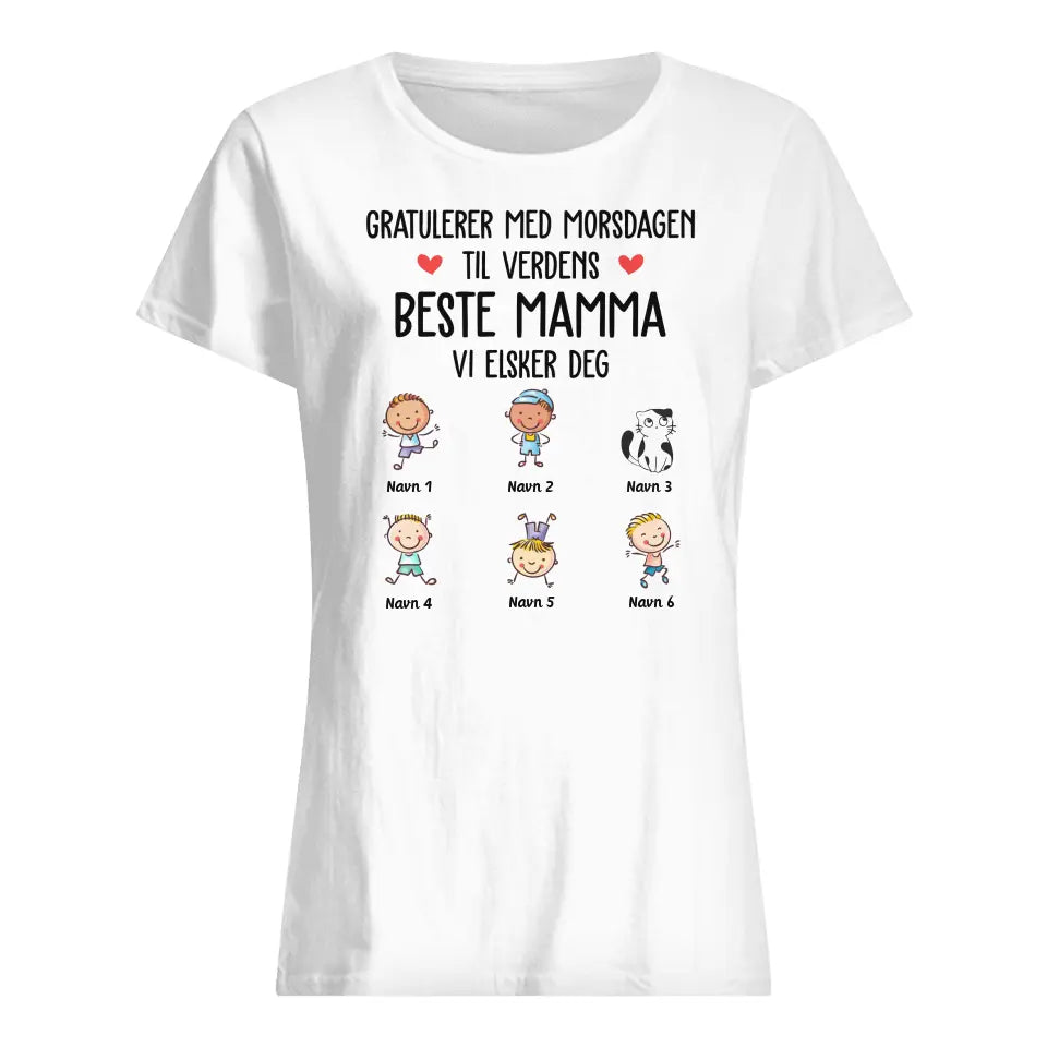 Personlig mamma T-skjorte | Tilpass gave til mor | Gratulerer med morsdagen til verdens beste mamma Vi elsker deg