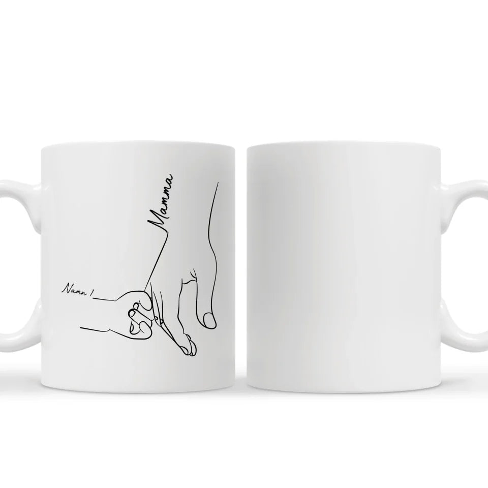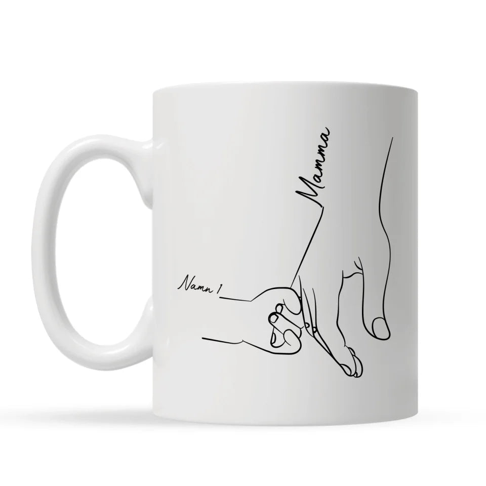 Personlig krus til mamma | Personlig gave til mamma | Mor og barn holder hender