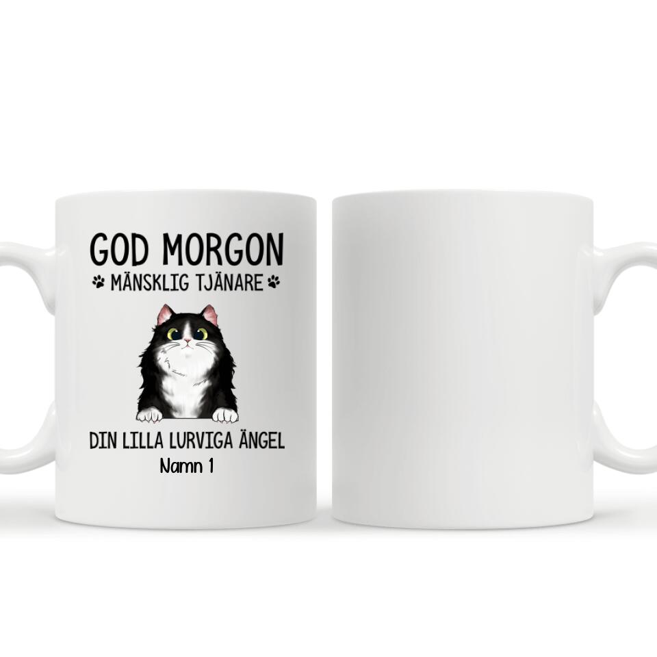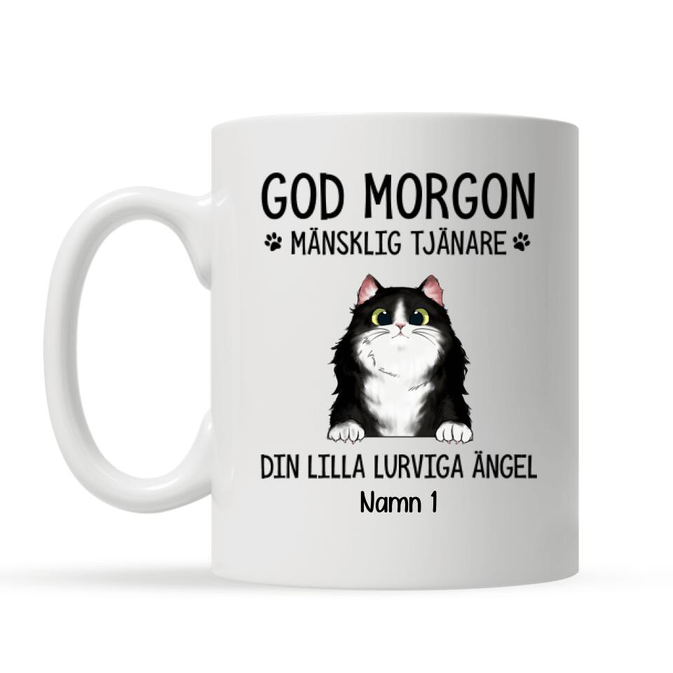 Personlig mugg till Kattälskare| Personlig presenter till Kattälskare | God Morgon Mänsklig Tjänare Din Lilla Lurviga Ängel