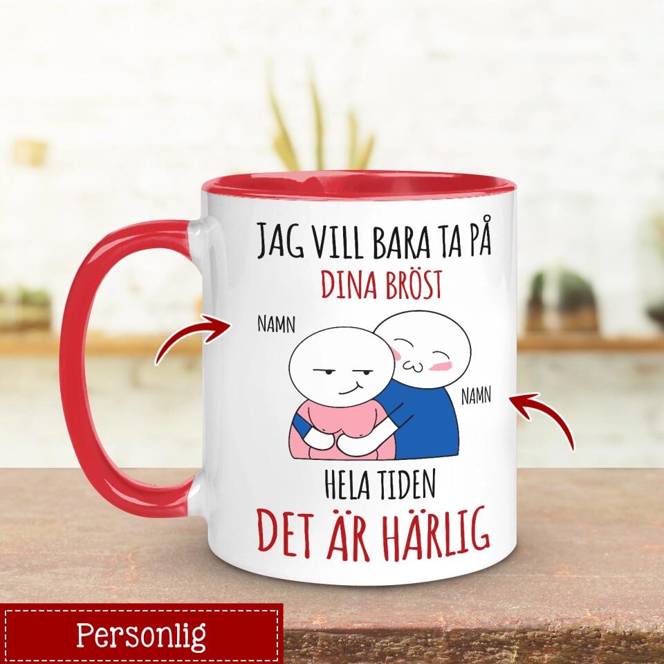 Personlig mugg till flickvän  | Personlig presenter till för henne | Rolig mugg med text Jag vill bara ta på  dina bröst  hela tiden