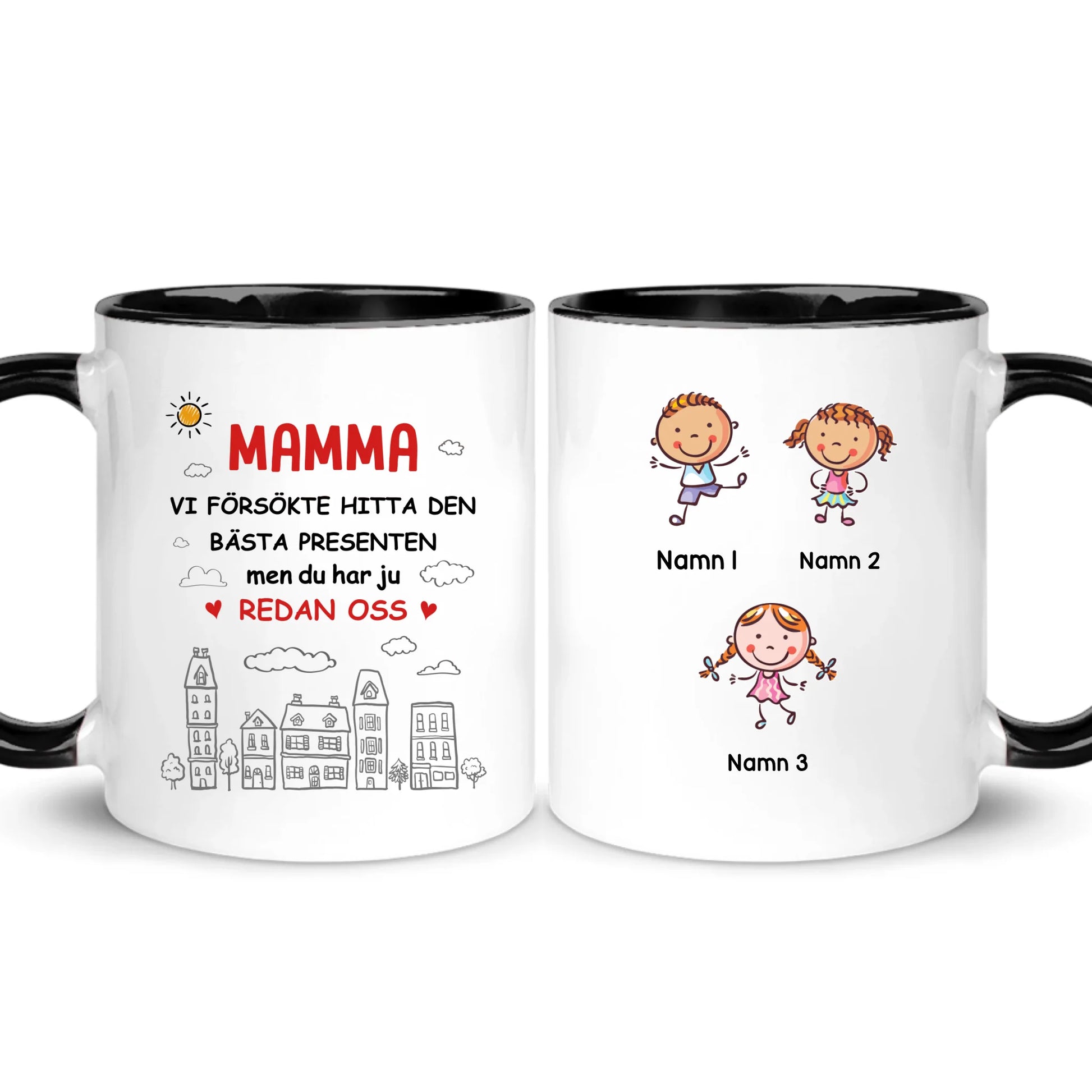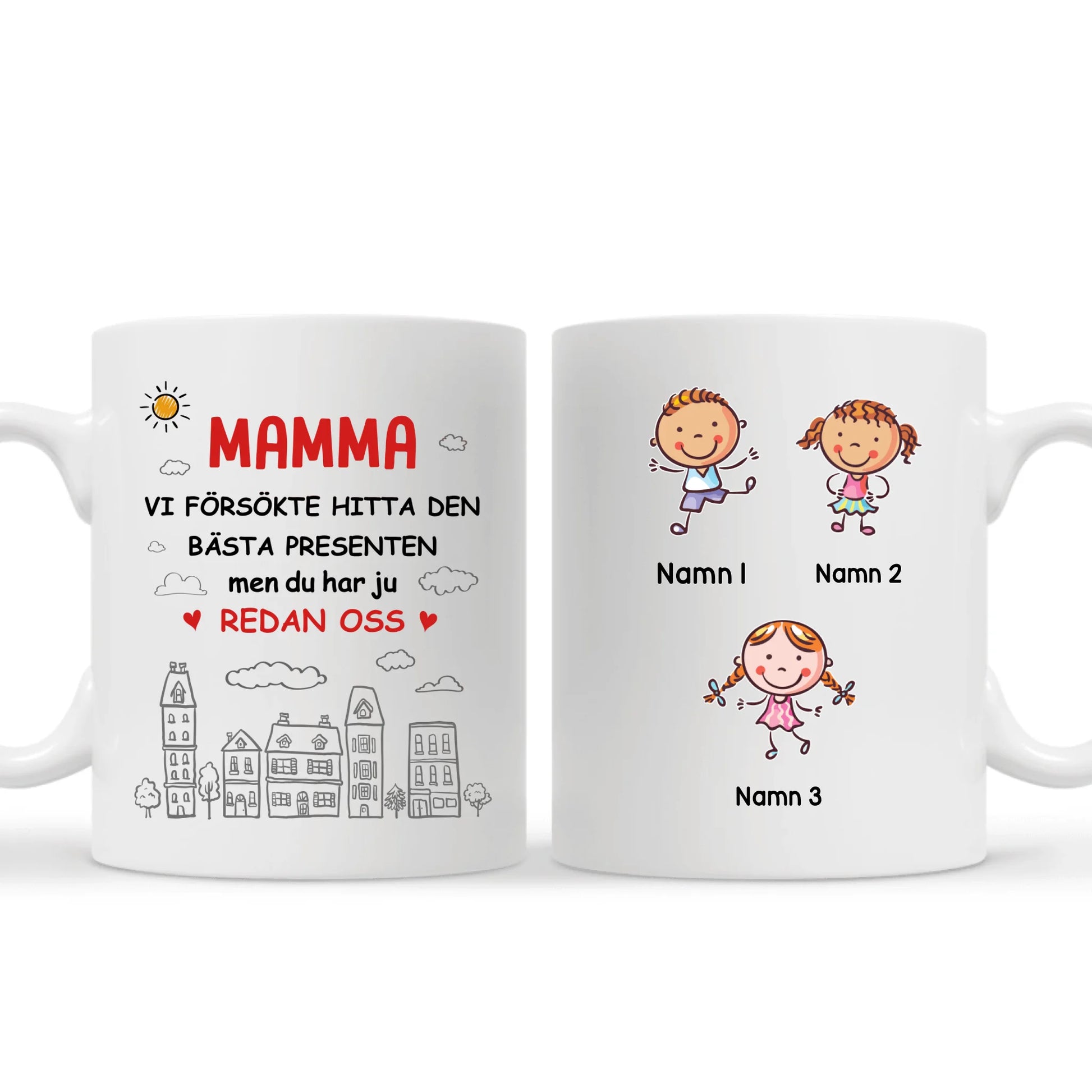 Personlig mugg till Mamma | Personlig presenter till Mor | Mamma vi försökte hitta den bästa presenten men du har ju redan oss