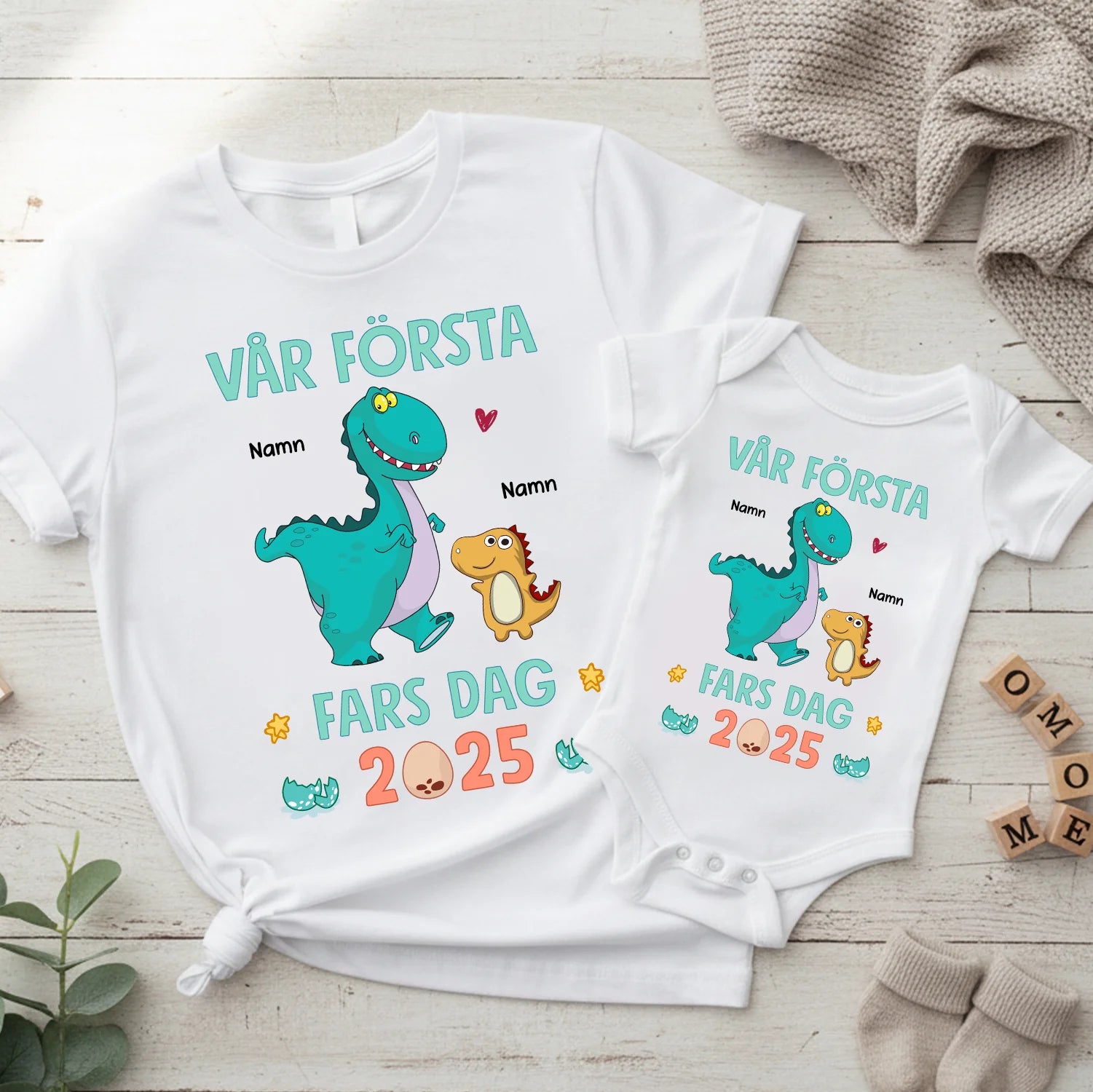 Vår första fars dag - Matchande T-shirt till Pappa och bebis